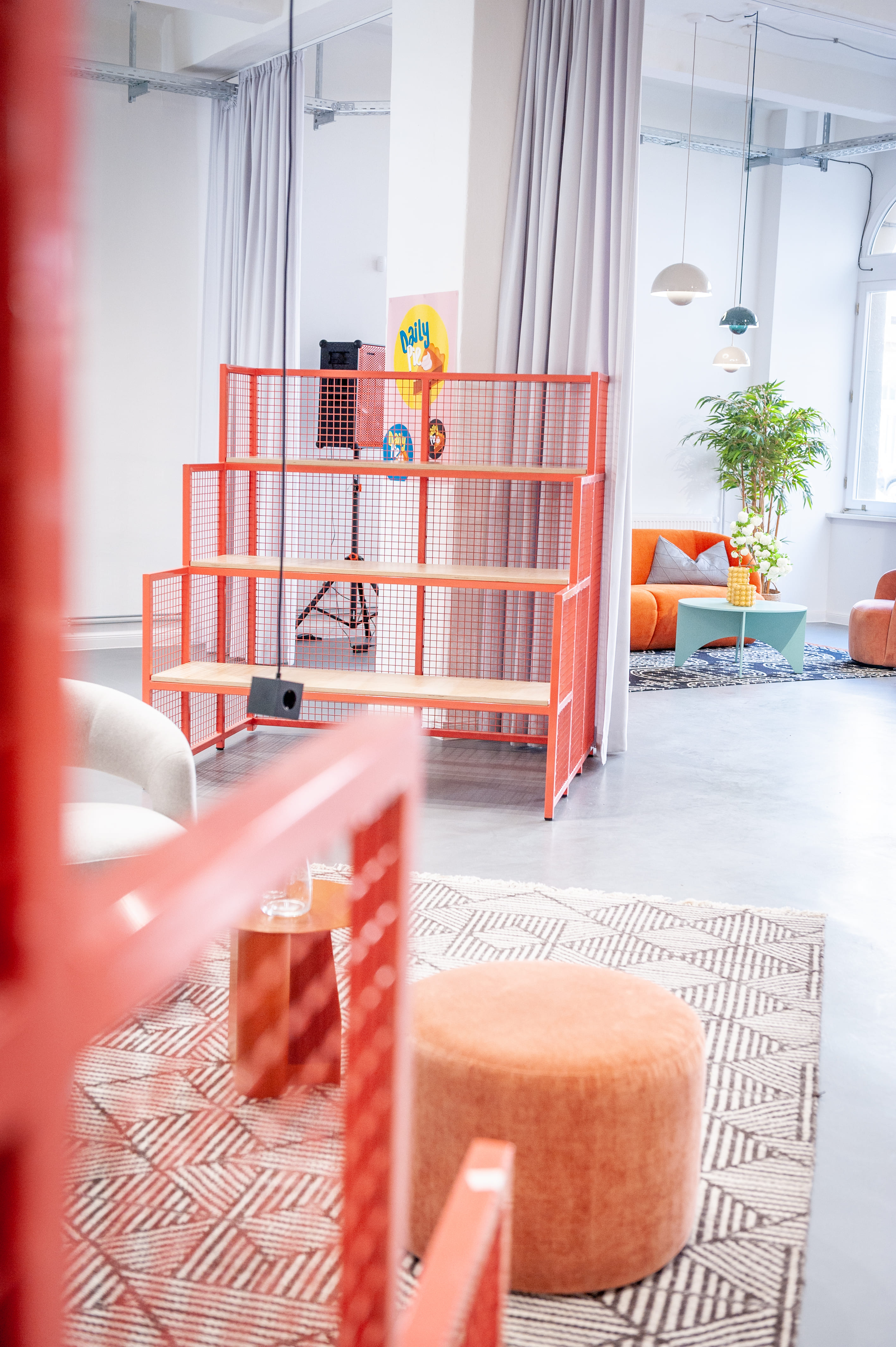 • Zahlreiche Vorhänge mit denen sich schnell Räume und Bereiche abtrennen lassen (z.B. für Styling, Hair/Makeup, etc)